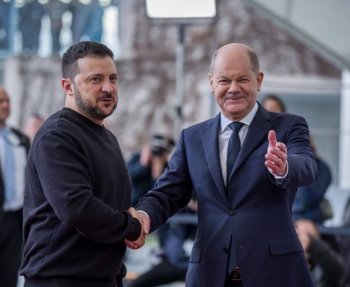 München/Berlin – Als Olaf Scholz seine letzte Unterschrift auf das viele, viele Seiten lange Dokument setzt, grinst er kurz. Dann steht er auf und drückt den Ordner Wolodymyr Selenskyj in die Hand. Ein „historischer“ Schritt, sagt der Kanzler. Die beiden Staatsche
