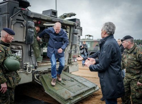 „Die finanziellen Folgen des Ukraine-Kriegs spürt jeder von uns“, sagte Scholz im Streit um den nächsten Haushalt. Hier steigt er bei einer Nato-Übung in Litauen aus einem Panzer. © dpa