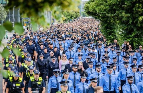 Schweigemarsch in Berlin: Auch in der Hauptstadt erwiesen hunderte Polizisten ihrem getöteten Kollegen die letzte Ehre. © dpa/Soe