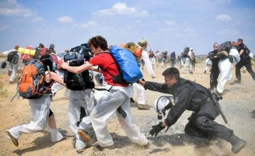 Klima-Protest bei Garzweiler: Mitglieder der Gruppe „Ende Gelände“ im Jahr 2019. © Sascha Steinbach/EPA