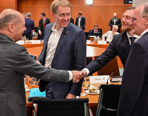 Berlin – Sie lassen sich Zeit, viel Zeit. Als der Kanzler und die Ministerpräsidenten Boris Rhein und Stephan Weil um kurz nach 2