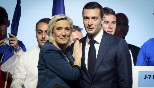 Jung, männlich, rechts: Jordan Bardella will Frankreichs Premier werden, seine Förderin denkt schon an mehr