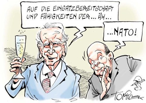 Die, äh, Nato wird 75 © Zeichnung: Tomicek