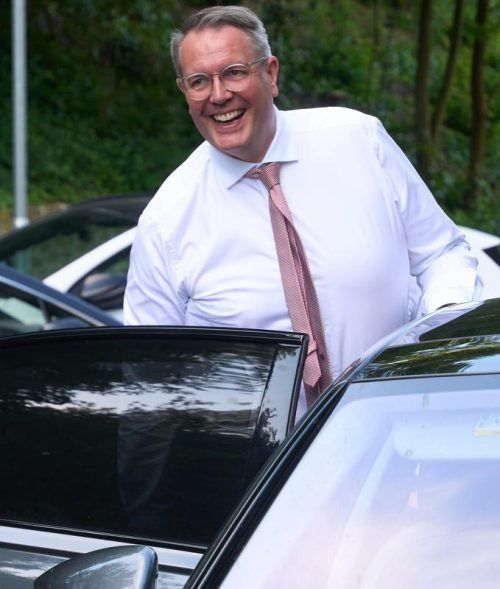 Er faltet sich ins Auto: Alexander Schweitzer (SPD) will Rheinland-Pfalz regieren. © dpa