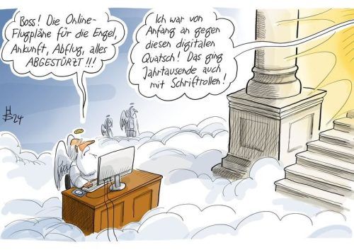 Sind wir zu abhängig von Computern? © Zeichnung: Sakurai
