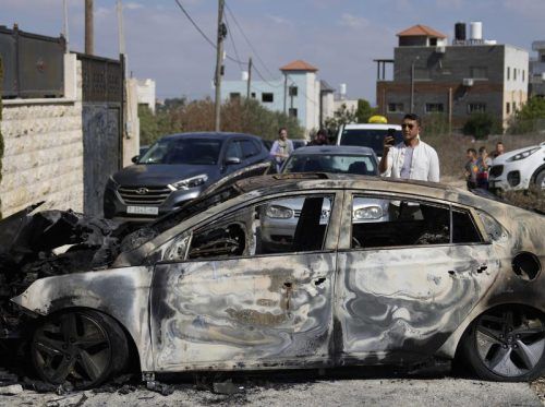 Siedler steckten in Dschit Häuser und Autos in Brand. © dpa