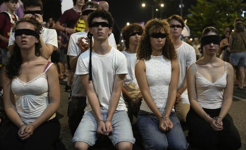 Druck auf Netanjahu: Angehörige von Geiseln und ihre Unterstützer protestierten gegen die Regierung in Tel Aviv. © dpa