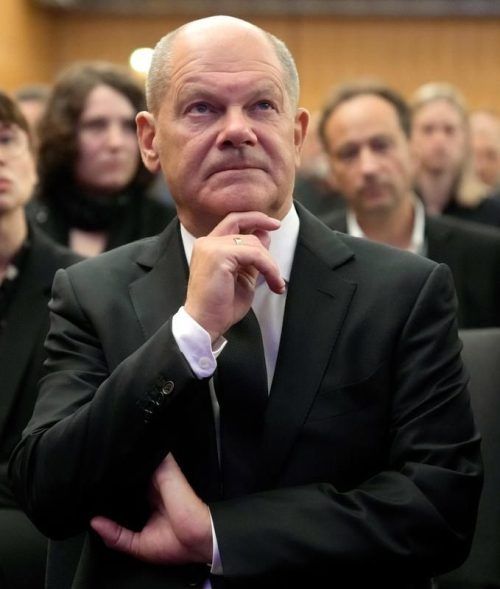 Nachdenklich: Olaf Scholz bei der Gedenkfeier. © dpa