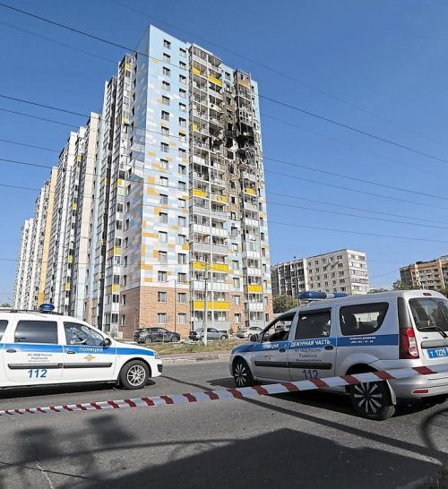 Ein Wohnhaus in Ramenskoje, außerhalb von Moskau, wurde durch den Drohnenangriff schwer beschädigt. © dpa