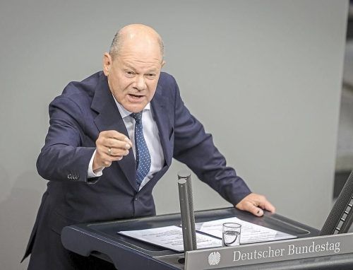 Gereizter Kanzler: Olaf Scholz (SPD) wirft CDU-Chef Friedrich Merz in für ihn ungewöhnlich angriffslustigem Ton eine „Theaterauführung“ vor. © Kay Nietfeld/dpa