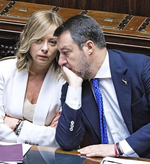 Machtprobe mit der Justiz: Giorgia Meloni (l.) mit ihrem Minister Matteo Salvini. © dpa
