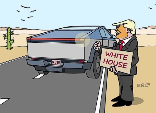 Per Anhalter ins Weiße Haus. © Zeichnung: Erl