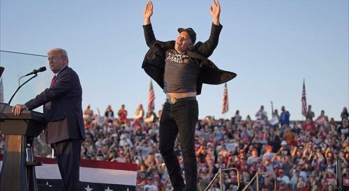 Glühender Trump-Fan: Tech-Milliardär Elon Musk unterstützt den Präsidentschaftskandidaten auf der Bühne in Butler – dort, wo Trump knapp dem Tod entkam. © Evan Vucci/dpa