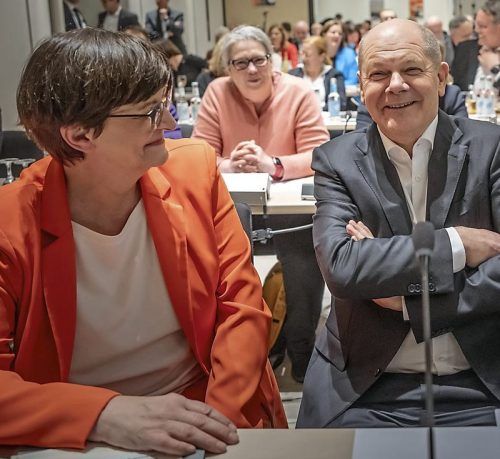 Kanzler Olaf Scholz neben SPD-Chefin Saskia Esken. © dpa