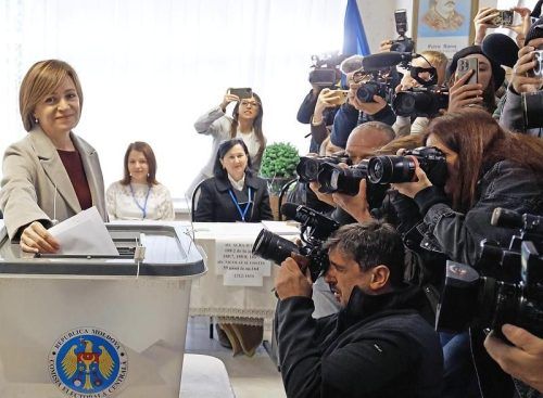 Präsidentin Maia Sandu bei ihrer Stimmabgabe in Moldau. © IMAGO/Dmitrij Osmatesko