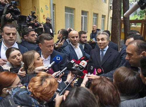 Triumphiert der Milliardär? Bidsina Iwanischwili, der Gründer und Führer der Partei Georgischer Traum, spricht nach der Stimmabgabe bei den Parlamentswahlen. © Jay Kogler/dpa
