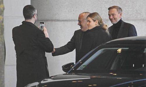 Abschiedsfoto? Finanzminister Christian Lindner (r.) kam auch gestern wieder zu Krisengesprächen mit Olaf Scholz und Robert Habeck ins Kanzleramt. © Sebastian Gollnow/dpa