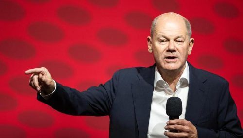 Augenscheinlich unbeeindruckt von den Diskussionen der vergangenen Wochen zeigt sich Bundeskanzler Olaf Scholz (SPD) auch am Freitag. © Hannes P Albert/dpa