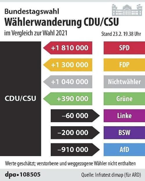 Merz-Migrations-Manöver kann starke Abwanderung zur AfD nicht verhindern, SPD büßt an fast alle Parteien ein
