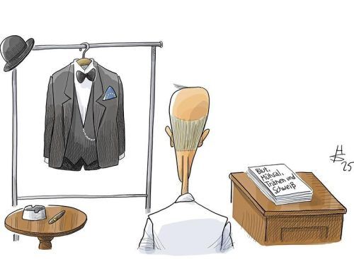 Friedrich Merz als Winston Churchill? Der europäische Erwartungshorizont, gezeichnet von unserem Karikaturisten Heiko Sakurai.