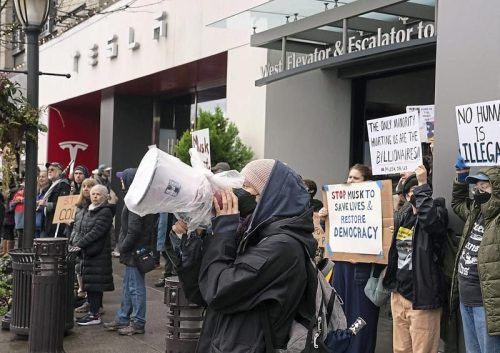 Washington – Wer in den USA einen Tesla fährt, hat es derzeit nicht leicht. Am Samstag versammelten sich rund 50 Demonstranten vor e