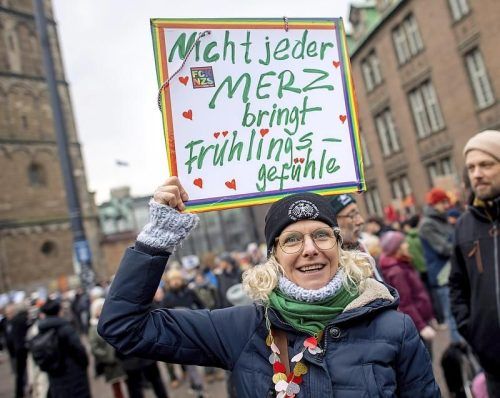 Parteipolitische Einflussnahme? NGOs riefen vor der Bundestagswahl zu Demos gegen Rechts auf. Merz hat Fragen zu ihrer Finanzierung und Neutralität. © Hauke-Christian Dittrich/dpa