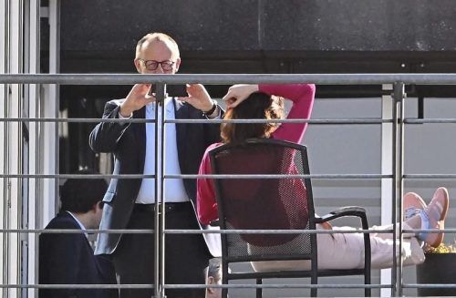Also doch wieder Balkon-Fotos: Friedrich Merz knipst Dorothee Bär. Das sieht lockerer aus, als die Gespräche in Wahrheit verlaufen. © Ralf Hirschberger/AFP