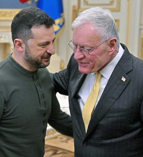 Gutes Verhältnis: Selenskyj (l.) und Kellogg. © afp