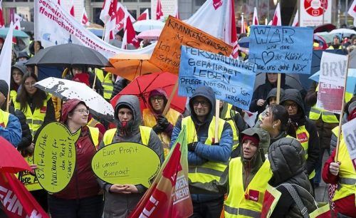 Protest im Regen: Mitarbeiter des öffentlichen Dienstes vergangene Woche auf dem Marienplatz in München. © Hoppe/dpa