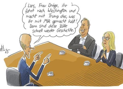 3. April 2025 20:48 14. April 2025 15:55 Schriftgröße S M L XL Zeilenabstand S M L 4. April 2025 Unser Verhandlungsteam für das Weiße Haus steht schon © Zeichnung: Sakurai Dieser Artikel (ID: 2260955) ist am 04.04.2025 in folgenden Ausgaben erschienen: Mühldorfer Anzeiger (Seite 2), Wasserburger Zeitung (Seite 2), Mangfall-Bote (Seite 2), Chiemgau-Zeitung (Seite 2), Oberbayerisches Volksblatt (Seite 2), Waldkraiburger Nachrichten (Seite 2), Neumarkter Anzeiger (Seite 2). zurück drucken