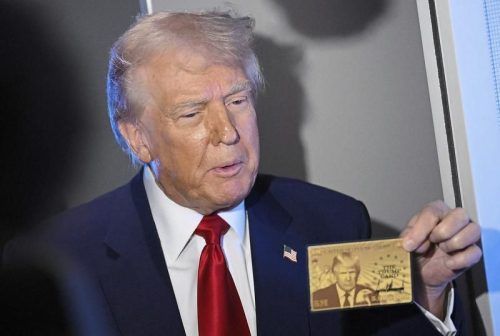 Der goldene Präsident: Trump lässt sein Konterfei auf exklusive Karten drucken. Die Trump-Card kostete fünf Millionen Dollar und gewährt unbegrenzten Aufenthalt in den USA. © AFP