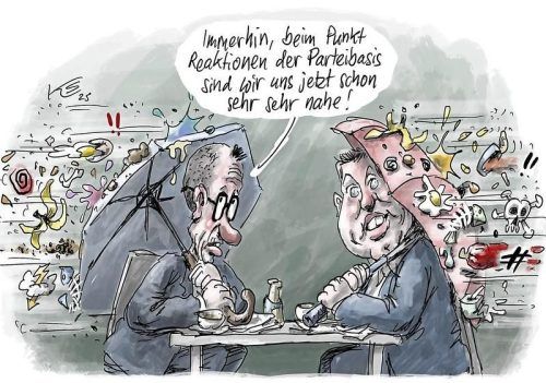 6. April 2025 23:12 7. April 2025 00:57 Schriftgröße S M L XL Zeilenabstand S M L 7. April 2025 Merz und Klingbeil entdecken Gemeinsamkeiten © Zeichnung: Stuttmann Dieser Artikel (ID: 2263110) ist am 07.04.2025 in folgenden Ausgaben erschienen: Mühldorfer Anzeiger (Seite 2), Wasserburger Zeitung (Seite 2), Mangfall-Bote (Seite 2), Chiemgau-Zeitung (Seite 2), Oberbayerisches Volksblatt (Seite 2), Waldkraiburger Nachrichten (Seite 2), Neumarkter Anzeiger (Seite 2). zurück drucken