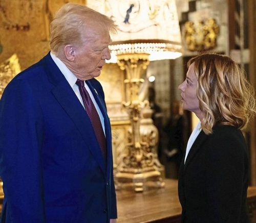 Populisten untereinander: Donald Trump bezeichnet Giorgia Meloni als „fantastische Frau“. Doch seine neue Zollpolitik trifft auch Italien hart. © Filippo Attili/AFP