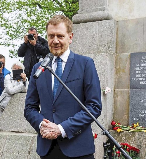 Torgau – Anlässlich einer Gedenkveranstaltung zum Ende des Zweiten Weltkrieges hat Sachsens Ministerpräsident Michael Kretschmer (CDU) den Krieg in der Ukraine verurteilt. Mit Blick auf die umstrittene Teilnahme des russischen Botschafters Sergej