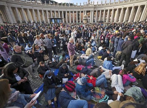Die Trauernden aus aller Welt brauchten viel Geduld und Ausdauer. Unser Bild zeigt Menschen, die die Nacht auf dem Petersplatz verbrachten. © Medichini/dpa