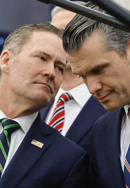 Erstes Opfer im Signal-Skandal: Sicherheitsberater Mike Waltz (l.) arbeitet nicht länger an der Seite des ebenfalls umstrittenen Verteidigungsministers Pete Hegseth. © MARIN/afp