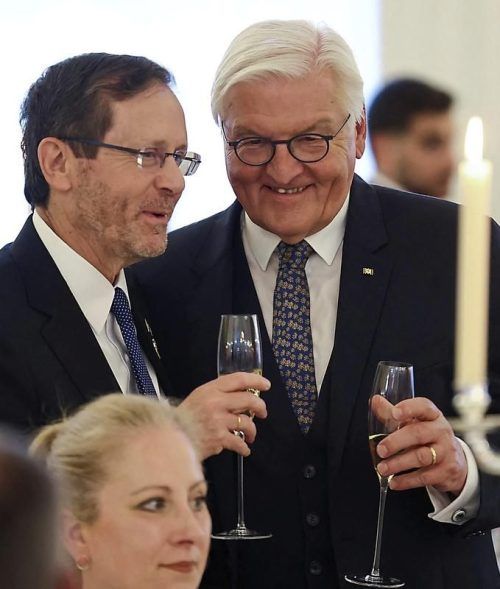 Bundespräsident Frank-Walter Steinmeier mit Präsident Izchak Herzog. © Lisi Niesner/dpa