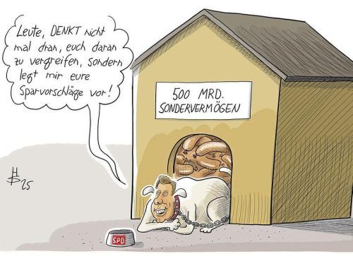 Gibt es doch einen Hund mit Wurstvorrat? (Frei nach FJS) © Zeichnung: Sakurai