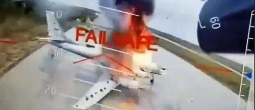 Ukrainische Drohnen zerstören einen russischen Tu-95-Bomber. Die Maschine brennt aus.