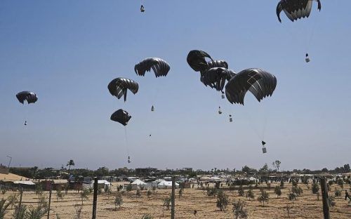 Hilfe von oben: Fallschirme werfen Hilfsgüter im zentralen Gazastreifen ab . . . © Hana/dpa