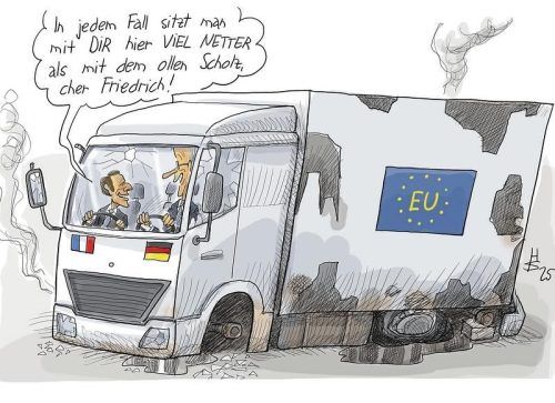 29. August 2025 20:17 30. August 2025 01:02 Schriftgröße S M L XL Zeilenabstand S M L 30. August 2025 Endlich wieder Harmonie in Europas Führerhäuschen! © Zeichnung: Sakurai Dieser Artikel (ID: 2348496) ist am 30.08.2025 in folgenden Ausgaben erschienen: Mühldorfer Anzeiger (Seite 2), Wasserburger Zeitung (Seite 2), Mangfall-Bote (Seite 2), Chiemgau-Zeitung (Seite 2), Oberbayerisches Volksblatt (Seite 2), Waldkraiburger Nachrichten (Seite 2), Neumarkter Anzeiger (Seite 2). zurück drucken