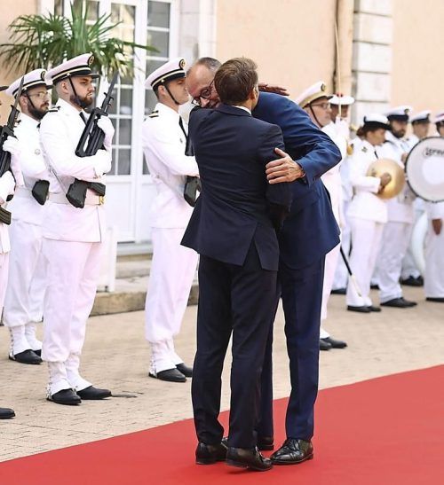 Harmonie: Emmanuel Macron umarmt Friedrich Merz. © dpa