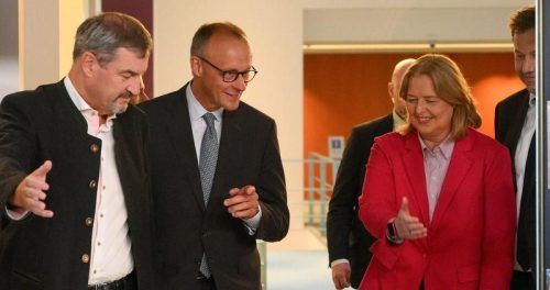 München – Friedrich Merz ist außer Atem, als er um 19.03 Uhr das Wort ergreift. Offensichtlich will er seine Gäste im Kanzleramt nicht warten lassen. Denn Merz will zei