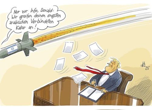 Netanjahu konsultiert Trump © Zeichnung: Sakurai