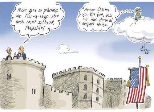 Trump auf Schloss Windsor © Zeichnung: Sakurai