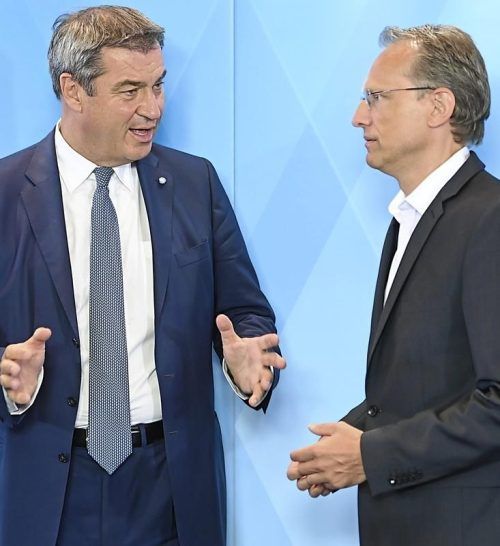 Diskussionsbedarf: Markus Söder (li.) mit DGB-Chef Bernhard Stiedl. © Hase/dpa