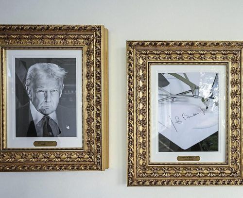 US-Präsident Donald Trump hat eine neue Galerie im Weißen Haus mit Porträts der US-Staatschefs für einen Affront gegen seinen Vorgänger Joe Biden genutzt. Die Fotos zeigen die US-Präsidenten chronologisch nacheinander – aber anstatt Bidens Konterfei ist dort ein Gerät abgebildet, das Unterschriften