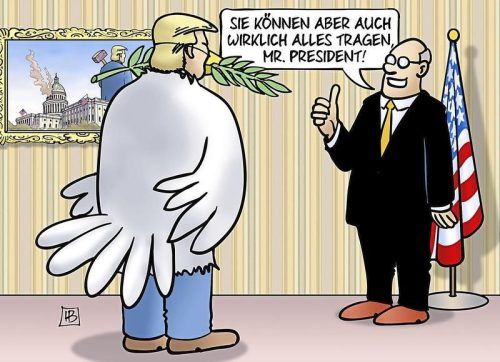 Der Einsatz als Friedenstaube © Zeichnung: Harm Bengen