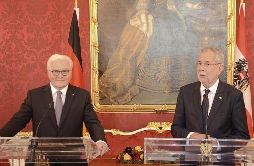 Sie haben nur die Macht der Worte: Frank-Walter Steinmeier und Alexander Van der Bellen nutzen sie unterschiedlich. Hier sehen sie sich in Wien. © Askin Kiyagan/dpa