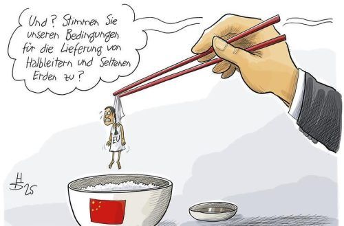 Wer am längeren Essstäbchen sitzt © Zeichnung: Sakurai